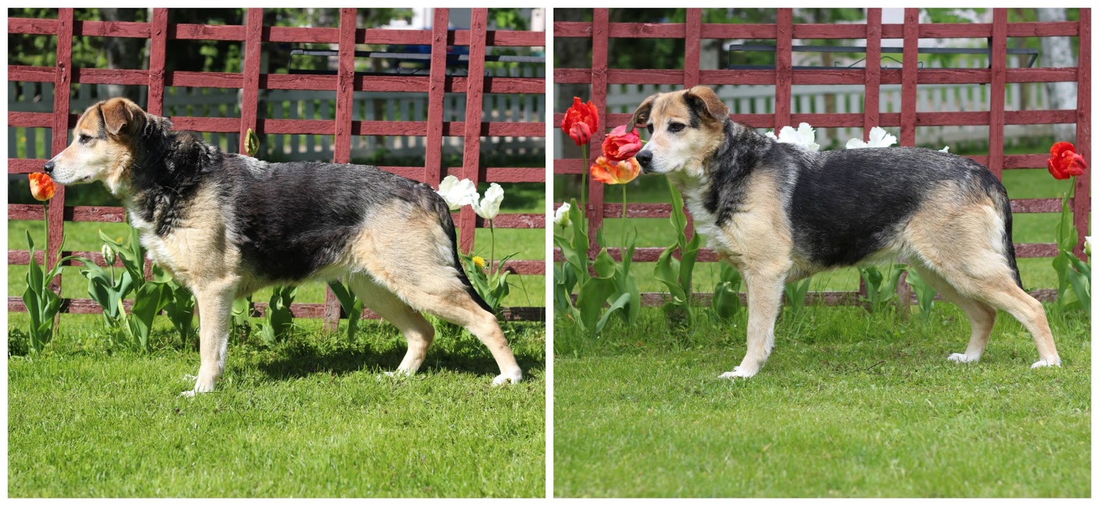 No se on tietenkin Lilli, kotoisemmin Ajokki, saksanpaimenkoira-suomenpystykorva emän ja 14 v ajokoiran rakkauspakkaus.